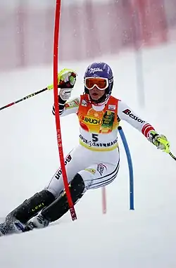 Michaela Kirchgasser (born 18 March 1985) is a retired Austrian alpine ski racer. She raced in the technical events of slalom and giant slalom, and also the combined.