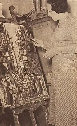 Poulain also found success as a self-taught painter,[8] handling a broad range of subjects, particularly views of old Montmartre. From 1931, she took part in the Salon d'Hiver, the Salon d'Automne, the Salon des Indépendants and the Salon des Tuileries, and her work was regularly on show in Montmartre galleries and on the Left Bank in Paris.[5]