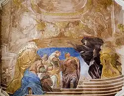 From 1685 Palloni worked in the Krasiński Palace in Warsaw, and in 1688 he was appointed court painter to the King John III Sobieski.[4] In the same year, Palloni decorated the Wilanów Palace and the Camaldolese Church in Bielany. Later he worked for Polish and Lithuanian noble families in Warsaw, Vilnius, Leszno and Węgrów.[3]