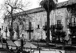 Villa Amari (38°10′26″N 13°18′20″E / 38.17390504059211°N 13.305540638310259°E / 38.17390504059211; 13.305540638310259), a baroque residence in the Piana dei Colli (today Via Traversa 50/1 in the Cardillo district of Palermo), pictured in 1989. Built in 1720 by the first Count Amari of Sant'Adriano, it will have later belonged to the third Count, the historian's grandfather. The chapel of St Joseph on the ground floor served as the community church until the establishment of the Cardillo parish of St Silvia in 1958.[11] In the 1930s, the villa passed into the hands of the Taormina family[3] and by the 1990s was used in cosa nostra activities.[12]