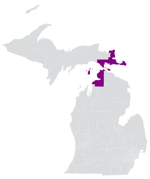 Michigan's 107th House of Representatives district (also referred to as Michigan's 107th House district) is a legislative district within the Michigan House of Representatives located in parts of Cheboygan, Chippewa, and Mackinac counties, as well as all of Charlevoix and Emmet counties.[2] The district was created in 1965, when the Michigan House of Representatives district naming scheme changed from a county-based system to a numerical one.[3]