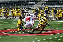 The program was promoted to NCAA Division I status by the university for the 2012 season.[5] The Wolverines played in the ECAC Lacrosse League as an affiliate member during the 2012 season and as a full member in 2013 and 2014.[6][7] In 2015, the Big Ten added men's lacrosse as a conference sport and the Wolverines joined Ohio State, Maryland, Rutgers, Penn State, and affiliate Johns Hopkins for the conference's first season.