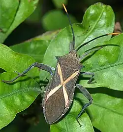 Mictis profana is a species of insect in the family Coreidae known by the common names crusader bug and holy cross bug. It is distributed in Australia, Indonesia, and the Indo-Pacific.