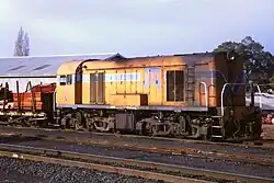 In 1957, MRWA took delivery of its first diesel powered locomotive in the form of diesel mechanical shunting unit E30. A year later the first of seven F class mainline diesel electric units entered service. In 1963, two G class were delivered but due to their axle loading were restricted to working between Midland Junction and Watheroo.[1]