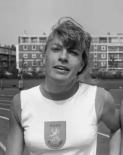 Mieke Sterk (Dutch: [ˈmikə ˈstɛr(ə)k]; born 5 January 1946) is a retired track and field athlete and politician from the Netherlands. She was part of the Dutch 4×100 m relay team that finished in fourth place at the 1968 Summer Olympics. Individually, she failed to reach the final in the 200 m event. Two years later she won a bronze medal in the pentathlon at the 1970 Universiade and finished fifth in the 60 m hurdles at the European Indoor Championships.[1] Her personal bests were 11.6 seconds in the 100 m (1968) and 23.5 seconds in the 200 m (1973). After retiring from athletics she became involved in politics and between 1994 and 1998 was a member of the Tweede Kamer of the Dutch House of Representatives.[2]