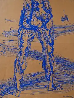 In 1976–1977, he went to study at the Milwaukee Art Center, United States, for a year, an experience that motivated him to formalize his artistic studies.[5] Upon his return to Ecuador, he enrolled in the Pontificia Universidad Católica del Ecuador to study Pedagogy and Literature until 1982, while continuing to develop his artistic career. In 1988, he was invited by the Department of State of the US to a Cultural Tour. In the same year, the British Council awarded him a scholarship to study a postgraduate art degree at the Slade School of Fine Art at the University College London (1988–1989).[5] These international experiences shaped his approach to movements such as analytical cubism, surrealism, and New Figuration.[6] During his time in London, Betancourt befriended British artist John Hoyland, who contributed to his understanding of abstract expressionism.[7]
