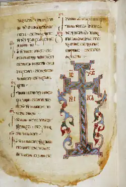 He rewrote the Gospel in 1054. His calligraphy was created in brown ink on a parchment using the Georgian asomtavruli script. It included the golden dots in between and the illuminated letters.