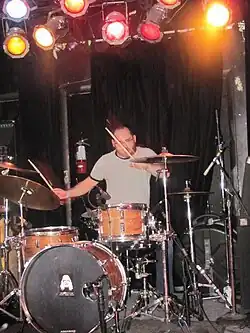 Michael "Mike" Soucy (born September 8, 1971) was born in Boston, MA and grew up in Woonsocket, RI. Soucy joined The Methadones in 2002 and played with them until their official hiatus in 2011.[1][2][3] He is currently the drummer for Airstream Futures and formerly of The Bomb[4] and Dan Vapid and the Cheats[5] and has also played live with Noise By Numbers. Soucy plays the same green Ludwig super classic drums that he bought back in 1992. He alternates between a Pearl Ultracast snare and CandC Drum company snares. He also uses Zildjian cymbals and Vic Firth 3A sticks.
