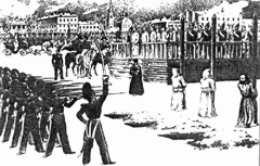 In 1849, Mikhail Petrashevsky was arrested and sentenced to death. Together with the other Petrashevtsy he was taken to the parade ground of the Semionovsky Regiment in Saint Petersburg, the usual place for public executions, and tied to the pole. At the last moment, the execution was stopped, and it was revealed that his sentence had been commuted to katorga for an unspecified term. He was sent to Eastern Siberia to serve his sentence.