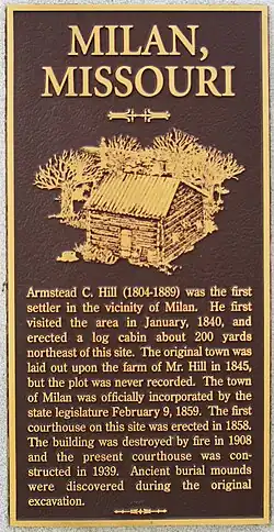 Milan (/ˈmaɪlən/ MY-lən)[4] is a city in Sullivan County, Missouri, United States. The population was 1,819 at the 2020 census.[5] It is the county seat of Sullivan County.[6]