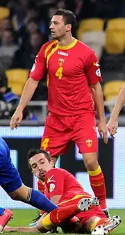 ![]() Jovanović standing over teammate Vladimir Volkov playing for Montenegro in 2012 | |||