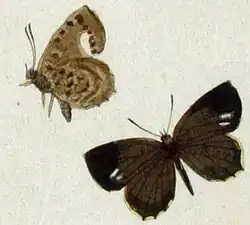 Miletus chinensis, the common brownie, is a butterfly in the family Lycaenidae. It is found in South Asia (Indomalayan realm)