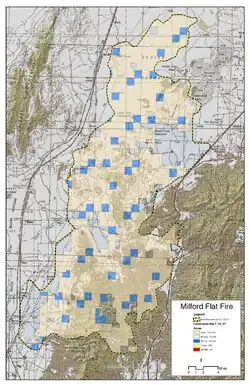 ![]() Satellite picture of the burn scar of the Milford Flat Fire taken on July 17, 2007 | |