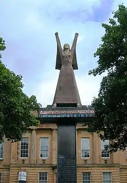 A labor union monument in Glasgow with Dolores Ibárruri 's quote, "It is better to die on your feet than live on your knees. ¡No pasarán!" on it.