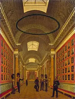The Military Gallery (Russian: Военная галерея) is a gallery of the Winter Palace in Saint Petersburg, Russia. The gallery is a setting for 332 portraits of generals who took part in the Patriotic War of 1812. The portraits were painted by George Dawe and his Russian assistants Alexander Polyakov (1801–1835), a serf, and Wilhelm August Golicke.
