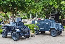 Armoured vehicles from the Malayan Emergency era in Malacca City.