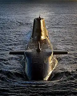 The Royal Navy also has Astute-class nuclear submarines that it can deploy to the area, though such deployments are classified and likely rare. In February 2012, a submarine of the former Trafalgar-class may have been deployed to the Falkland Islands.[32] The threat posed by submarines to hostile ships was demonstrated during the Falklands War when HMS Conqueror sank the Argentine cruiser ARA General Belgrano. The Royal Navy's current fleet submarines also carry BGM-109 Tomahawk cruise missiles, which have a range of 1,500 miles (2,400 km).