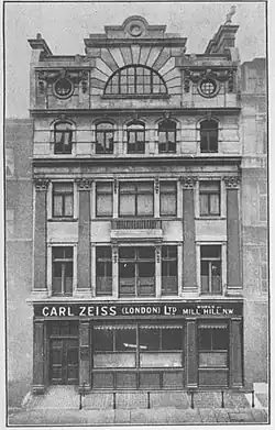 The United Kingdom / Carl Zeiss / Bausch & Lomb Optical Works was established at the top of Bittacy Hill in 1912 and demolished about 1990, to be replaced by a large building owned by the Jehovah's Witnesses, to complement their nearby Watchtower House built on the site of the former Bittacy House.