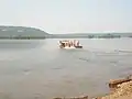 ![]() The Millersburg Ferry as viewed from the eastern shore. Note the ferry wall to the downstream side of the boat, midway across the river. | |