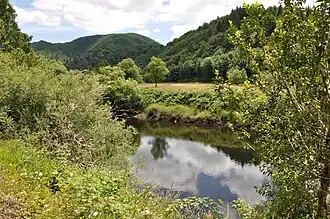 Oregon Route 241 (Coos River Highway) runs along the right bank of the river from Allegany to the mouth. The Millicoma meanders generally southwest, receiving Woodruff Creek from the left slightly downstream from Allegany. Deton Creek enters from the right at Rooke Higgins County Park near river mile (RM) 3.5 or river kilometer (RK) 5.6. About a half-mile later, Hendrickson Creek enters from the left. The Millicoma receives Matt Davis Creek from the right just before meeting the South Fork Coos River to form the Coos River about 5 miles (8 km) from the larger stream's mouth on Coos Bay.[4][6]