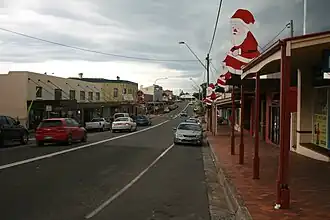 Former convict, Henry Claydon took possession of 100 acres of land near Milton in 1855, establishing an estate known as Claydon Park. A devout Methodist, Claydon donated land in 1856 to the Wesleyan Church and the following year, the first church in the district was built on the site. The Sarah Claydon retirement village in Milton in named for Henry's wife, who worked as a Midwife in the area until her death in 1876.[5] The village was formally established in 1860 as a private town on land owned by John Booth, soon after followed by the construction of several public buildings, including the Star Hotel (1860), St Peter and St Paul Anglican Church (1860), Uniting and Catholic churches (1872), Town Hall (1871), courthouse and public school (1877) and a post office (1880). As a town, Milton is classified with the Australian National Trust, due to the number of homes and buildings in the town that were built from 1870 onwards.[6] The town has declined in importance as a regional centre through the 20th Century, but remains a popular tourist destination.