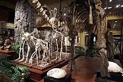 • A 14,500-year-old woolly mammoth skeleton, known as the Hebior Mammoth, excavated in Kenosha County in the 1990s. The real bones are too fragile to display or mount and are preserved for research, but a fiberglass replica set is on display at the museum.[23]
