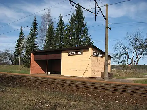 Milzkalne Station is a railway halt located about 1 km (0.62 mi) south the village of Milzkalne in the Courland region of western Latvia.[1] The railway halt is located on the Torņakalns – Tukums II Railway. Not every train stops at the Halt.[2]