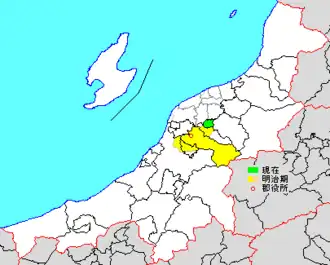 When the district was formed back in the Meiji Period, the district covered the cities of Sanjō and Mitsuke, the town of Tagami, and parts of Kamo and the northern part of Nagaoka.