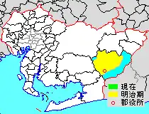 * yellow - areas formerly within the district borders during the early Meiji period