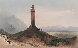Minar-i Chakri was a pillar made of carved stones on an elevation of 2500m, 16 kilometers southeast of Kabul in Afghanistan. It was 28.5 meters high and was one of Buddhist buildings which at the time of the Kushan Empire was built in the area of Kabultals. Minar-i Chakri was built in the 1st century AD and was heavily damaged during the Afghan Civil war. In March 1998 it collapsed, falling to the south-west.[1] The pedestal and brick debris remain visible in satellite imagery.