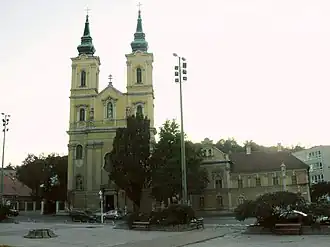 The Mindszent Church (Mindszenti templom) is a Roman Catholic parish church in the centre of Miskolc, Hungary. It was built between 1724 and 1880 in Baroque style. It is officially called St. Peter and Paul Church, but in colloquial speech it's always referred to as Mindszent church.