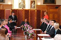 The Governor-General, Sir Jerry Mateparae, signs the warrants for new ministers of the Crown, January 2013