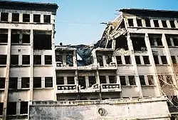 The Yugoslav Ministry of the Interior building, damaged by a NATO bomb during the Kosovo War.