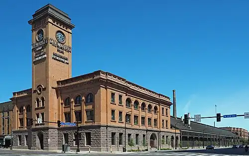 ![]() The Milwaukee Road Depot from the west, with train shed at rear | ||||||||||||||||||||||||||||||||||||||||||||||||||||||||