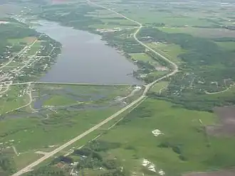 Minnedosa Lake is a man-made lake in the Canadian province of Manitoba near Minnedosa, Manitoba. It was created between 1910 and 1912 to serve as a reservoir for a hydro-electric dam. Today it is a popular recreation site, for both boating and swimming. The lake is considered one of the best sites for competitive rowing in Canada and was the venue for the 1999 Pan American Games rowing events. The lake is fed by the Little Saskatchewan River.
