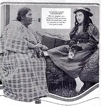 The actress starred alongside Roscoe Arbuckle in the 1914 silent comedy film Fatty and Minnie He-Haw, directed by Arbuckle. She is featured as a Native American, whom Arbuckle reluctantly marries after being rescued by her tribe. Arbuckle pursues a white woman in town, played by his real-life wife Minta Durfee, but is driven back when He-Haw discovers his disloyalty. Outraged, the tribe prepares to burn him for his traitorous behavior, but He-Haw spares him in an act of love.[7] He-Haw chases her man but ultimately loses him when he disappears into the hills with angry warriors trailing behind.