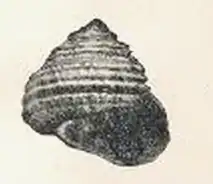 The height of the shell attains 6.75 mm, its diameter 6.5 mm. The shining shell has a roundly turbinate shape. It is grey, painted above with closely set transverse bands of greyish brown. The 6½ whorls are flattened above. The sculpture and the colouring is complicated and it is very difficult to give anything like an adequate description. The whorls are sculptured with a number of beaded carinae, increasing to four on the body whorl. The space above these are occupied by two spiral beaded riblets, a third also occurring between the first and second carinae. The sutures are impressed. The base of shell is sculptured with two spiral grooves and a number of very fine spiral striae. It is painted with a zone of fine, closely set cinereous flammules, within which is a second zone almost uniformly of the same colour. The umbilicus is whitish, wide, deep, and bears several small, indistinct, spiral, crenate riblets. The outer margin is surrounded by a coarsely crenulate carina. The columella is somewhat angularly arched above, descending obliquely and terminating rather abruptly. The peristome is acute. The aperture is subquadrate.[2]