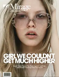 Mirage, founded in 2009 by Henrik Purienne and Frank Rocholl, is an annual 400-page fashion and culture magazine inspired by the photographic aesthetic and hedonistic culture of the 1960s and 1970s.[1] The magazine intends to revive and reflect upon the spirit of artists such as The Velvet Underground, The Doors, and Nick Drake. It draws and reflects upon architects like John Lautner and Paolo Soleri; designers such as Massimo Vignelli and Marcello Gandini; and fashion icons such as Lauren Hutton, Anita Pallenberg, and Betty Catroux.