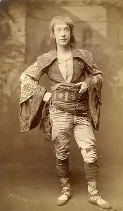 The original version of Mirette opened at the Savoy Theatre, London, on 3 July 1894 and closed on 11 August 1894.[3] It draws heavily on Balfe's opera The Bohemian Girl (1843) and uses various shopworn theatrical devices and conventions, including the gypsy background (featured in The Bohemian Girl as well), a romance across class and station, the desertion of the bride at her betrothal ceremony, and the antics of the comedian. These would have been very familiar to London audiences at the time. Furthermore, this romantic type of opera was out of place at the Savoy Theatre, which was the home of Gilbert and Sullivan and their unique kind of less sentimental comic opera.[4]