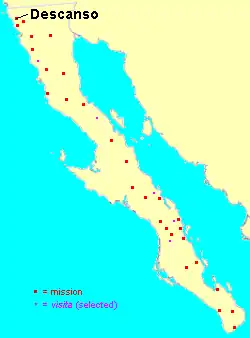 1. ^ a b c d says, John Hall (2014-09-05). "The Spanish Missions on the California Peninsula: #26, El Descanso (1810-1834)". Discover Baja Travel Club. Retrieved 2022-05-10.