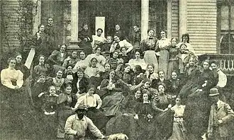 Miss Dana ensured that the "entire school met weekly to discuss current events, and the senior year focused on such themes as exploitation in the slums, reports of muckrakers, and the growth of the Socialist party."[2] She wanted her students to create a forum around contemporary social and political topics. Her philosophy was "intellectual and moral."[1][2][3]