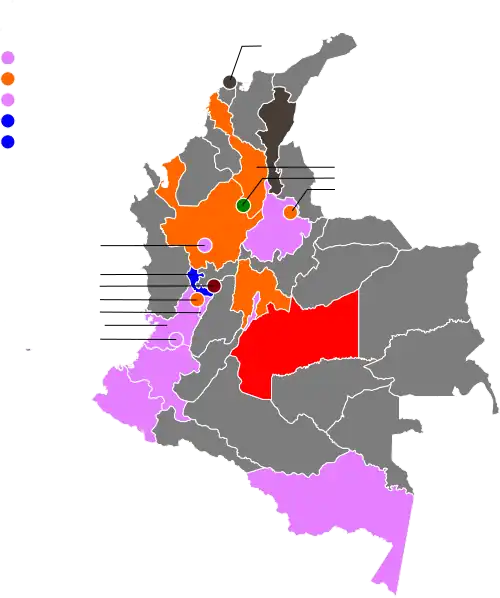 Originally, twenty-five candidates confirmed to participate, but two candidates, including Dayana Cárdenas Mestraof the Cesar, and Sophia Ortiz of Barranquilla, withdrew from the competition for health issues,[14] making the finalized total of twenty-three contestants.[2][3]