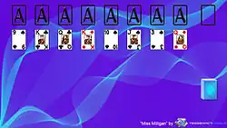 Miss Milligan is a patience game which is played using two decks of playing cards,[1][2] and is one of the most popular of the double-deck games.[3] According to Peter Arnold, author of Card Games for One, this classic game's enduring popularity is in part due to its amazing tendency to enable complete recovery from seemingly hopeless positions.[4] Winning chances with good play are about 1 in 20 games.[5]