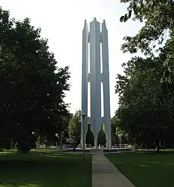 ![]() The Administration Building rises above the Missouri State Arboretum | |