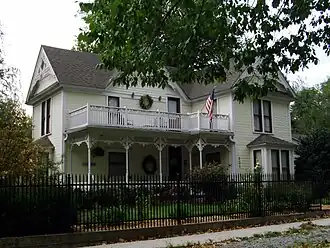The Mitchell–Ward House is a historic house at 201 North Nelson in Gentry, Arkansas. Its main block is an L-shaped wood-frame structure, with a cross-gable roof, and a large gable above the porch in the crook of the L. The three front-facing gable ends have decorative Folk Victorian jigsawn trim and different styles of siding, and the porch features turned posts, a spindled balustrade, and a decorative frieze. The interior has also retained all of its original woodwork. The house was built in 1897, and is one of the finest Queen Anne/Folk Victorian houses in the city.[2]
