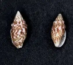 | Two views of a shell of Mitrella semiconvexa (museum specimens at Naturalis Biodiversity Center) | |