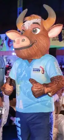 Moga[a] (transl. Love) was the official mascot for the 2023 National Games of India, which were held in Goa from October to November. Representing the spirit of determination and perseverance, Moga was depicted as an emblematic representation of an Indian bison, symbolizing a set of attributes that include resilience and the ability to surmount obstacles. The mascot served as an embodiment of the commitment exhibited by athletes in their pursuit of excellence within their chosen sporting disciplines.[1]