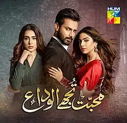 Mohabbat Tujhe Alvida (Urdu: محبّت تجھے الوداع, lit. 'Farewell To You Love') is a Pakistani melodrama television series produced by Barkat Siddiqi and Zayed Sheikh. It stars Zahid Ahmed, Sonya Hussain, and Mansha Pasha in lead roles.[1] The show is loosely based on the folk tale of Lila Chanesar.[2]