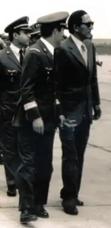 ![]() Mohamed Oufkir, Minister of Defence (right), with Lt-Colonel Mohamed Amekrane (left), inspecting pilots at Kenitra Air Base. | |