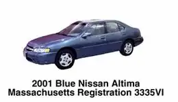1N4DL01D81C212547 is the VIN of a blue 2001 Nissan Altima GXE[2] rental car belonging to Alamo Rent a Car, that was found in the Portland International Jetport parking lot following the September 11 attacks in 2001. It was issued a Massachusetts license plate 3335 VI.